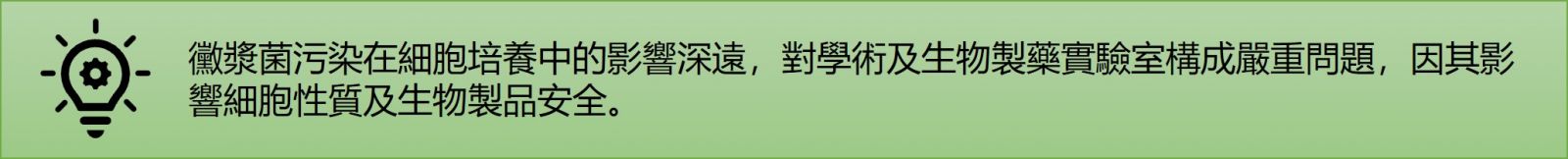 若污染未被偵測,受污染的培養物可能危及科學數據、延誤研究計畫,並危及生物製藥產品的安全性。因此,研究人員必須保持警覺,在細胞培養中偵測並預防黴漿菌污染。